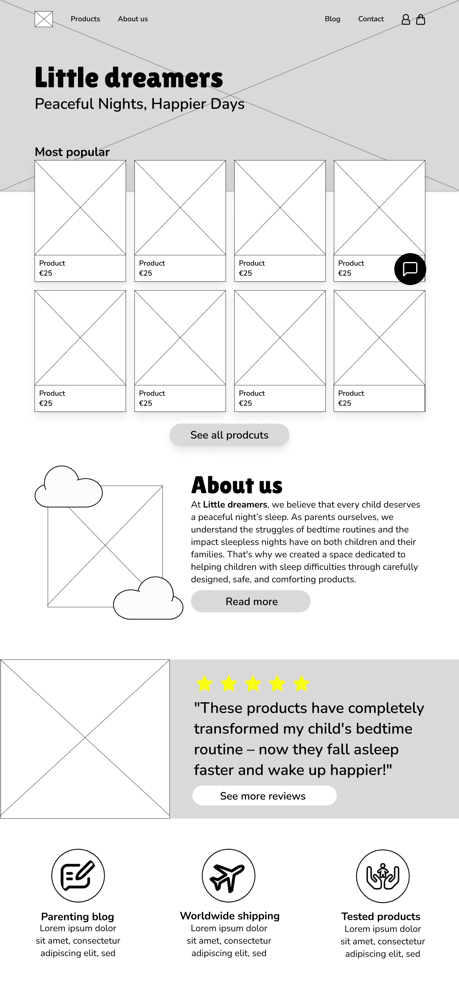 I designed and built a webshop based on a chosen product category. I created the website for Little Dreamers, focusing on a clean layout and a smooth user experience. The goal was to make the site feel clear, accessible, and trustworthy for parents.