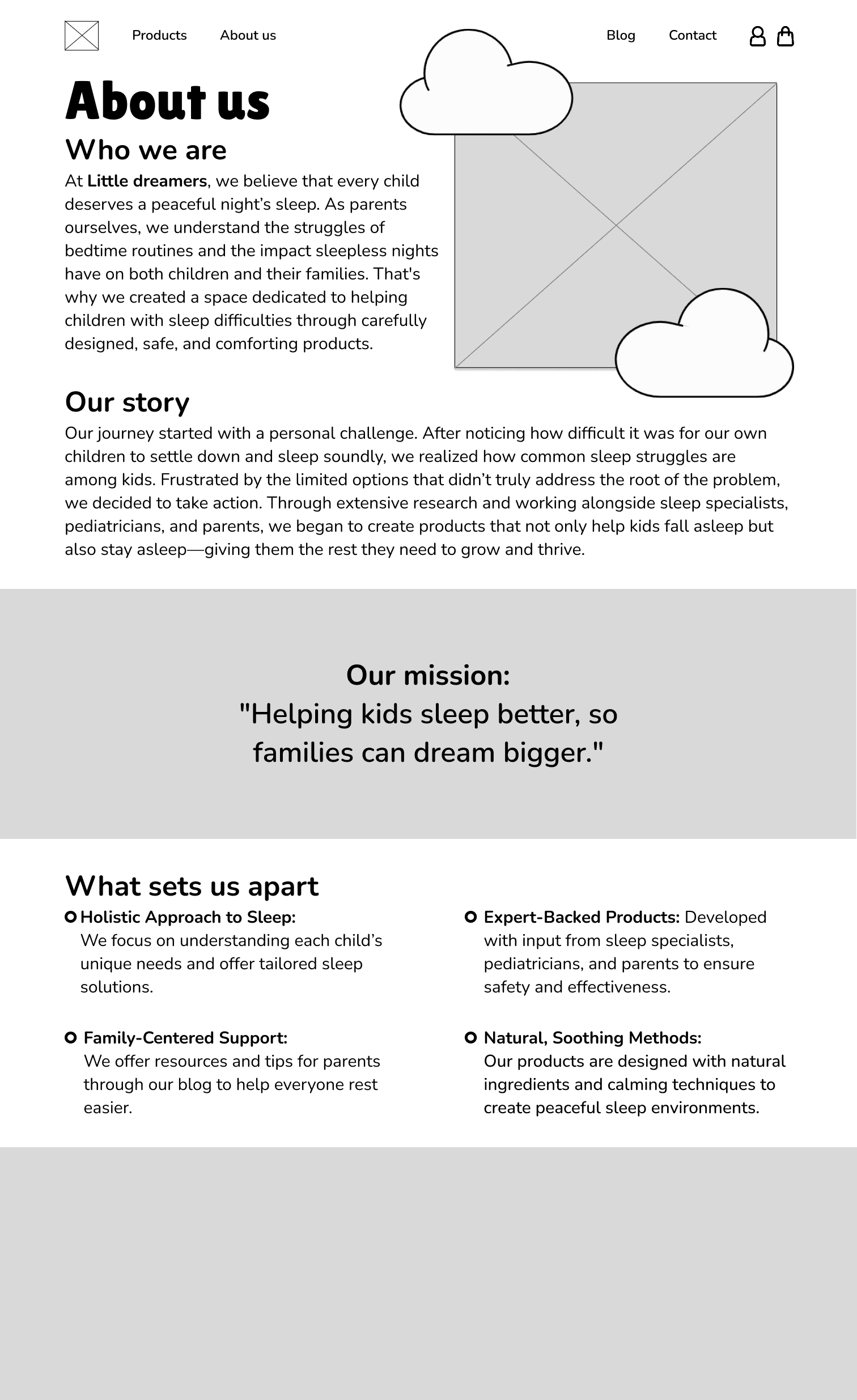For this project, I designed a webshop based on a chosen product category. I came up with the concept Little Dreamers, focused on sleep improvement products for children. The goal was to create a clear and trustworthy design that supports both the brand and the user experience.